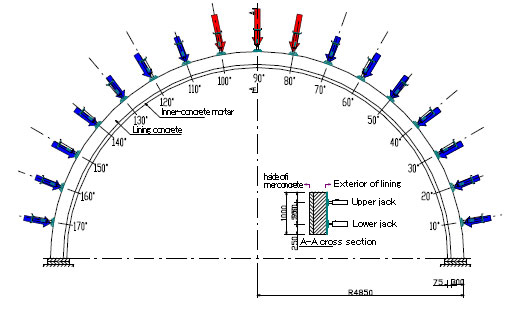 0920 Model of two-lane tunnel: Outer diameter 9.7m (Concrete lining: t=300mm; reinforcing concrete lining: t=75mm)