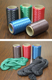 VECTRAN raw fiber can be dyed(*) due to its unique manufacturing process. Kuraray offers five color variations, having recently added a new color, brown, to the existing choices of black, green, blue and red.