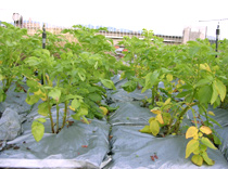 - * Outdoor tests reveal that there is approximately a six-degree Celsius difference in the surface temperature of soil pouches and the internal temperature of the soil contained within (results of outdoor tests conducted by a university in Hyogo Prefecture). As a result, the soil pouches are able to prevent deterioration of the planting environment caused by high soil temperatures.