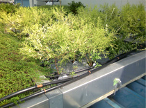 The eight companies that jointly developed the thin-layer rooftop gardening and corrugated plate roof-greening system established the Thin-Layer Rooftop Gardening Research Group in 2005 and conducted R&D related to rooftop gardening systems that reduce the load on buildings. Rooftop gardening alleviates the urban “heat-island” phenomenon by offering such benefits as preventing the reflection of sunlight, lessening rainwater drainage, achieving heat insulation that effectively reduces air conditioning costs and providing an area suitable for rest and relaxation. Rooftop gardening is developing into an environmental business field that is expected to be beneficial from a variety of standpoints, including energy conservation, aesthetics and legal considerations.