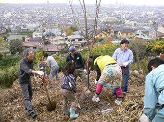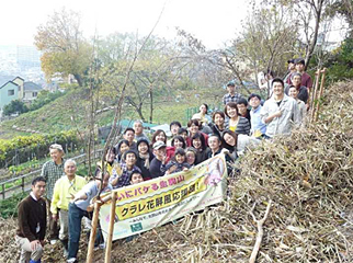 - To ensure biodiversity and prevent global warming, since 2005, Osaka Prefecture has been obtaining corporate participation and implementing its "Adopt-a-Forest" program for promoting broadleaf tree planting in devastated forests, including neglected man-made forests and bamboo forests. In 2009, Kuraray launched its Adopt-a-Forest Gojo "Ikoma Flower Folding Screen Activities." With the cooperation of prefectural residents this massive 15-year project plans to make the Ikoma mountain range resemble a Japanese folding screen through the planting of 10,000 flowers and trees that produce beautiful flowers, as well as trees that display stunning autumn foliage.