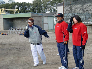 The day was blessed with fine weather. On the field, approximately 200 participants-consisting of elementary and middle school students and their parents, all of whom were Okayama Prefecture residents-received training in catch and other softball techniques from Ms. Taeko Utsugi. All renowned Japanese softball players, Mses. Reika Utsugi, Yukiyo Mine and Kazue Ito joined Ms. Taeko Utsugi to offer valuable lessons to the participants.