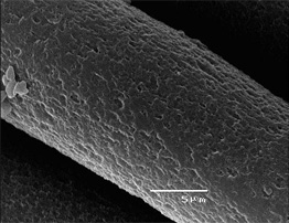 - (2) The combined use of a special deep-dyeing resin created by controlling the molecular structure on a nano level and a special processing technology, both jointly developed by Kuraray Trading and Urase, resulted in a film that evenly coats the ultra-microcrator relief structure of the fiber surface, realizing outstanding blackness by minimizing the reflection of light.